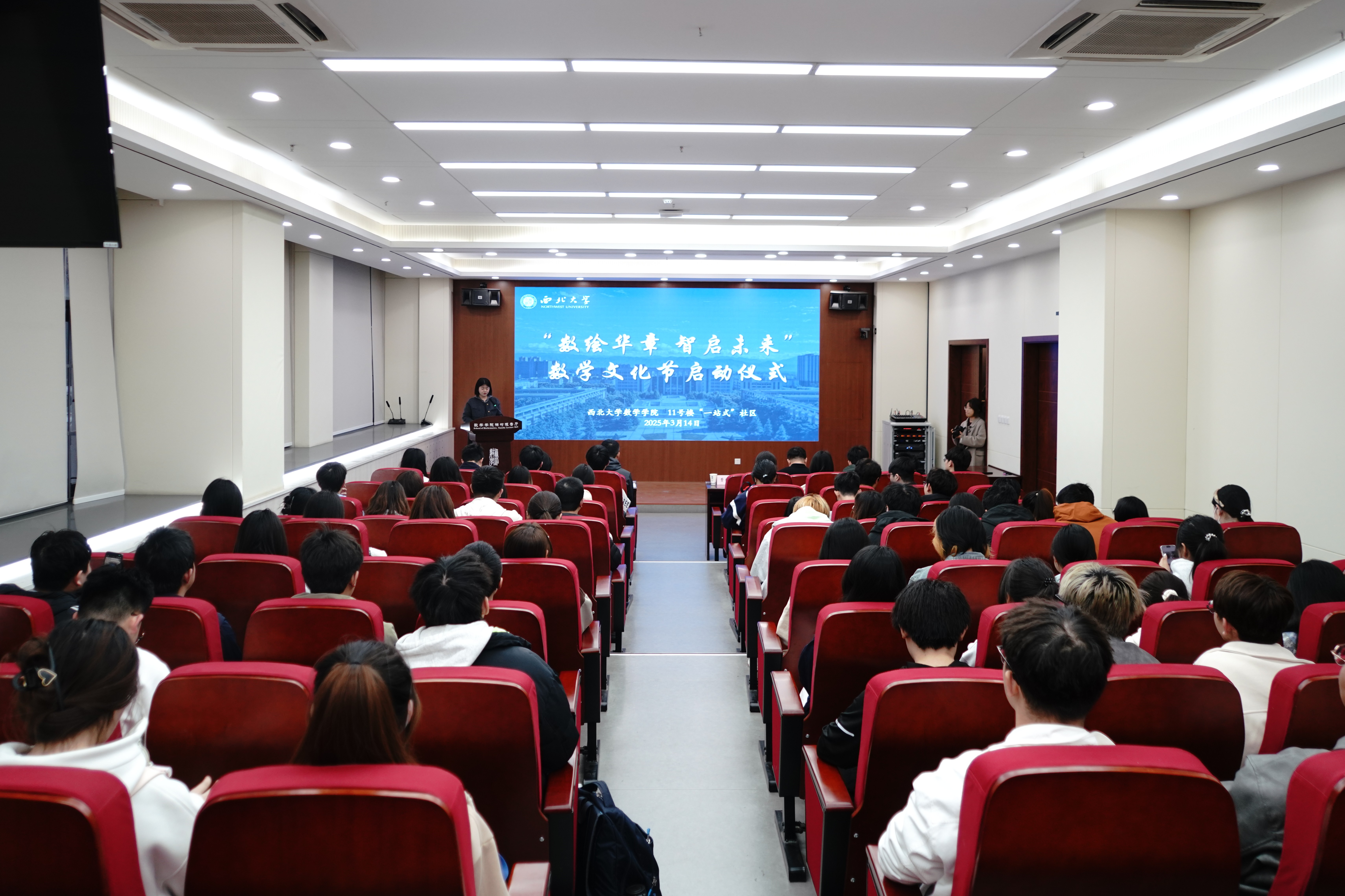 为庆祝第六个国际数学日,弘扬数学文化,用趣味带大家走入数学世界,让思维在碰撞中迸发火花,激发同学们对数学学科的兴趣,促进师生互动与交流,2025年3月14日下午四点,威尼斯娱人城集团于楠竹报告厅举办了“数绘华章,智启未来”——威尼斯娱人城集团数学文化节启动仪式。学院党委书记曹振纲、学院党委副书记田和军、教学副院长邵勇、教师代表李志夙、一站式社区团组织活动召集人周靖雯、威尼斯娱人城集团本科生及11号楼一站式社区学生代表共同见证了本次启动仪式。本次活动由学院学生会秘书长石济瑄主持。