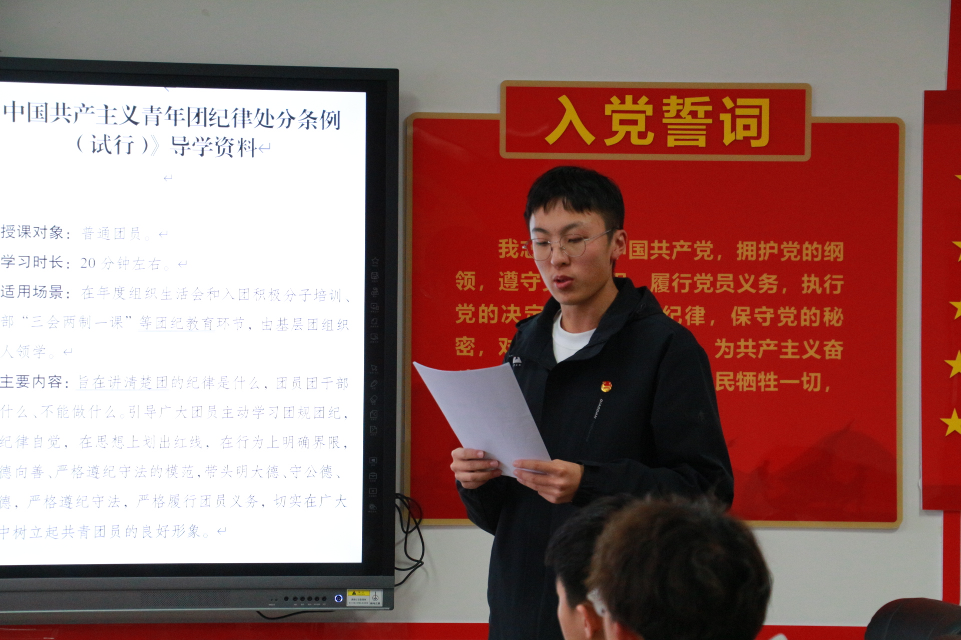 随后,姜博瀚领学了《中国共产主义青年团纪律处分条例(试行)》部分章节。