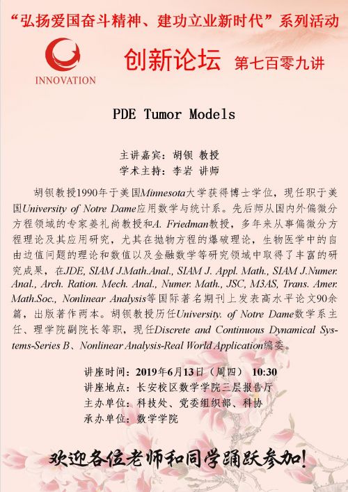 威尼斯娱人城集团创新论坛第七百零九讲:PDE Tumor Models