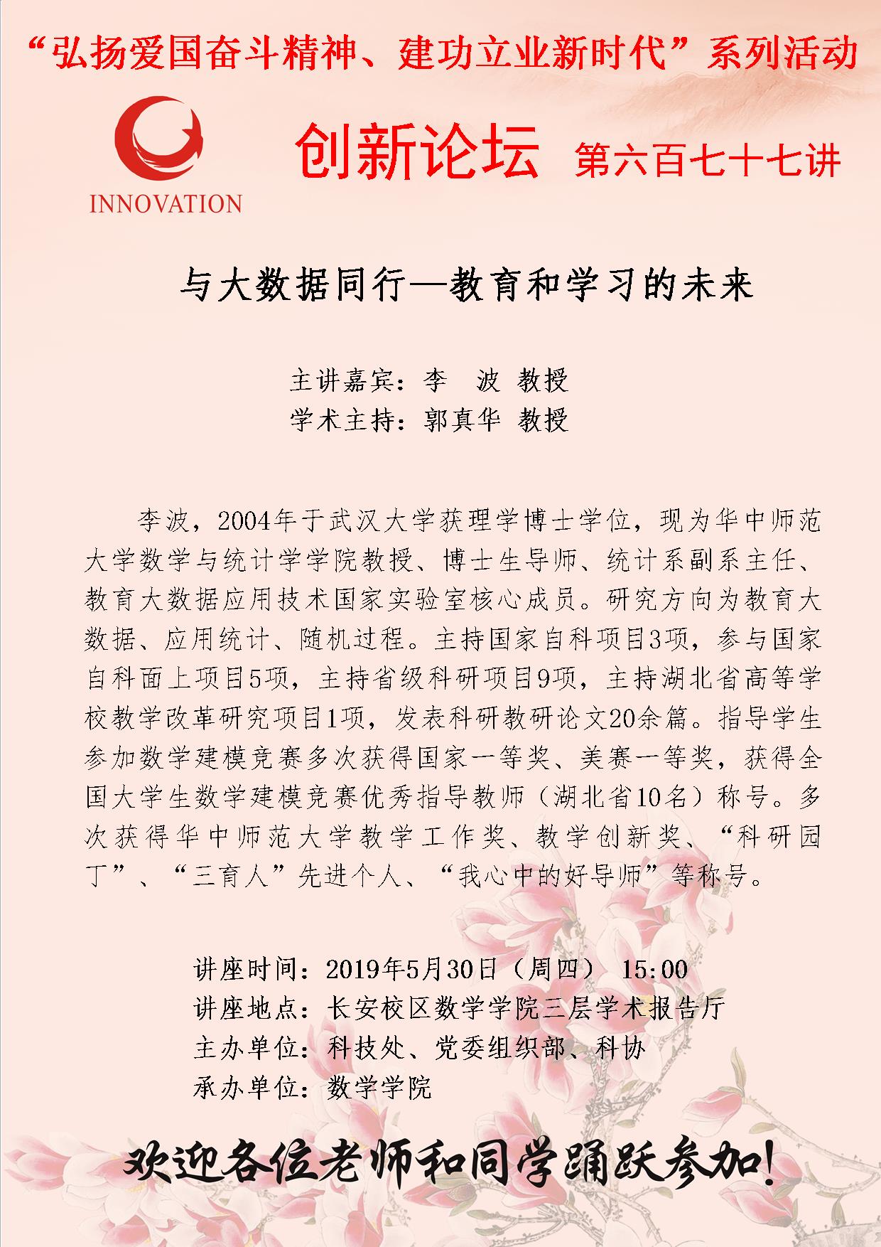 威尼斯娱人城集团创新论坛第六百七十七讲:与大数据同行——教育和学习的未来
