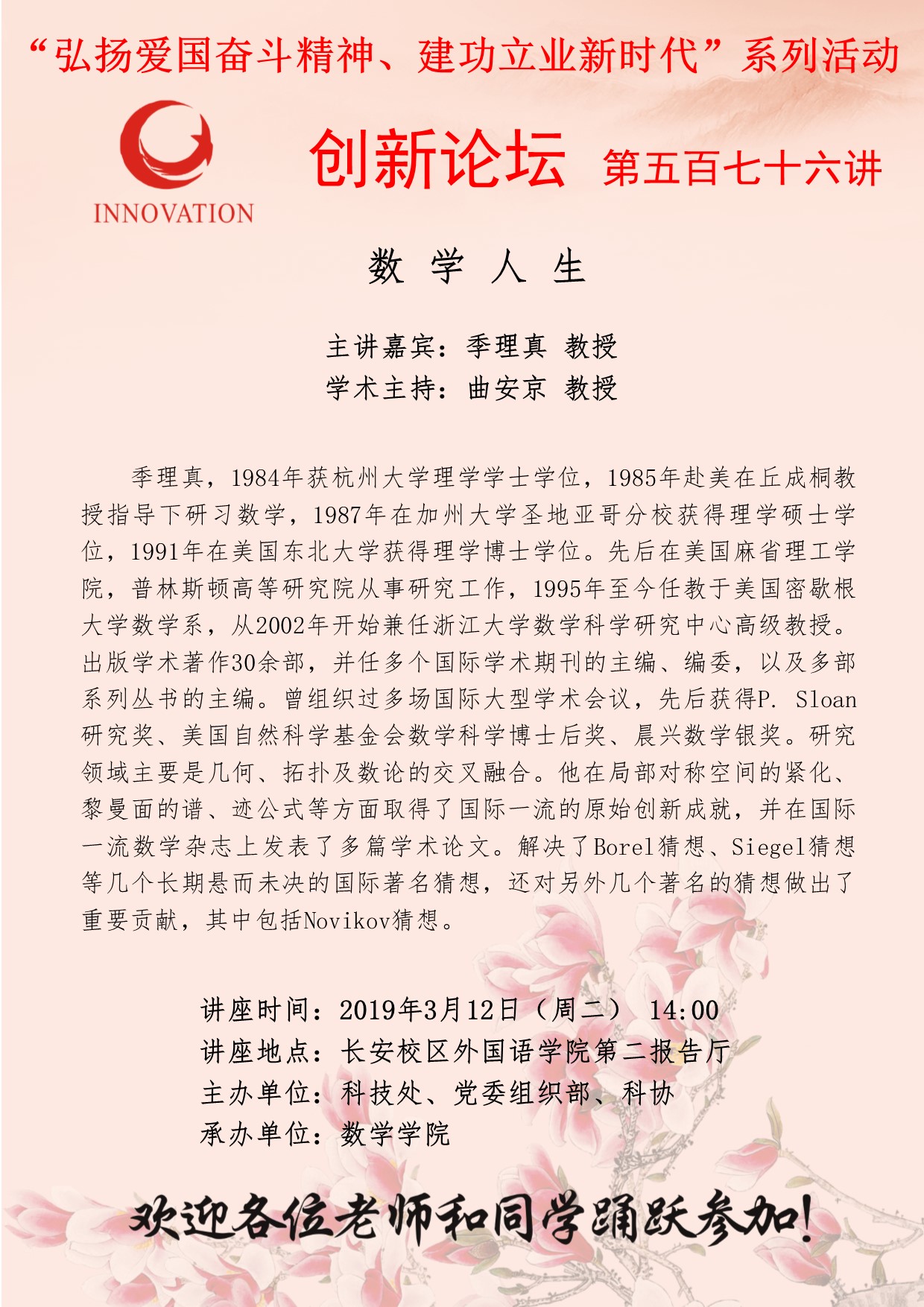威尼斯娱人城集团创新论坛第五百七十六讲(“弘扬爱国奋斗精神、建功立业新时代”系列活动):数学人生