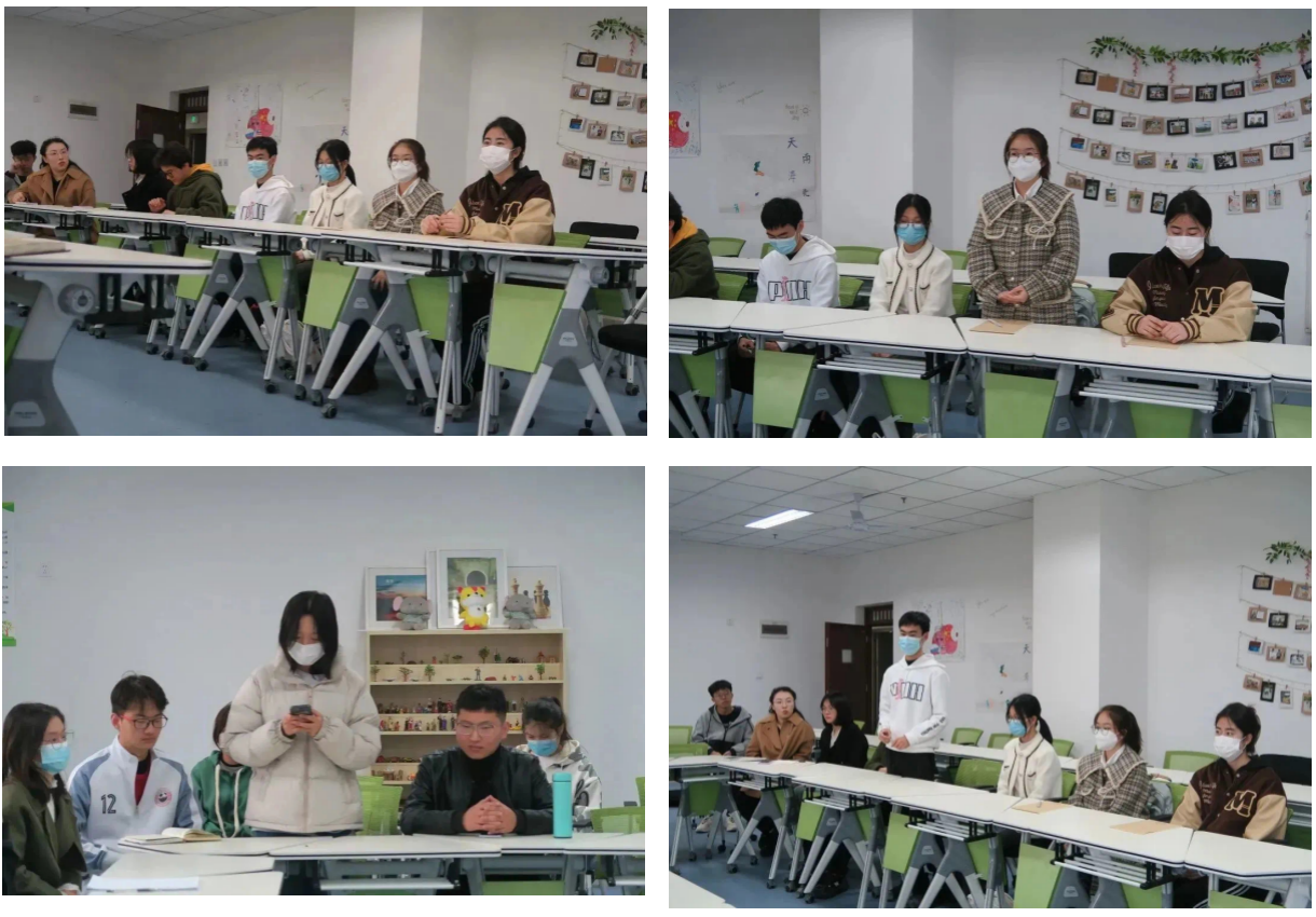 会议上同学们积极发言,分享自身感悟。同学们都谈到了返乡后的变化。刘轩妤同学谈到家乡的冰雪节因疫情多年未举办但是在今年又重新举办。李江涛同学谈到家乡的市场都营业了,常常约着三五好友出去游玩;宿海越同学说她的家乡焕发生机,允许放烟花后,过年更有年味了。