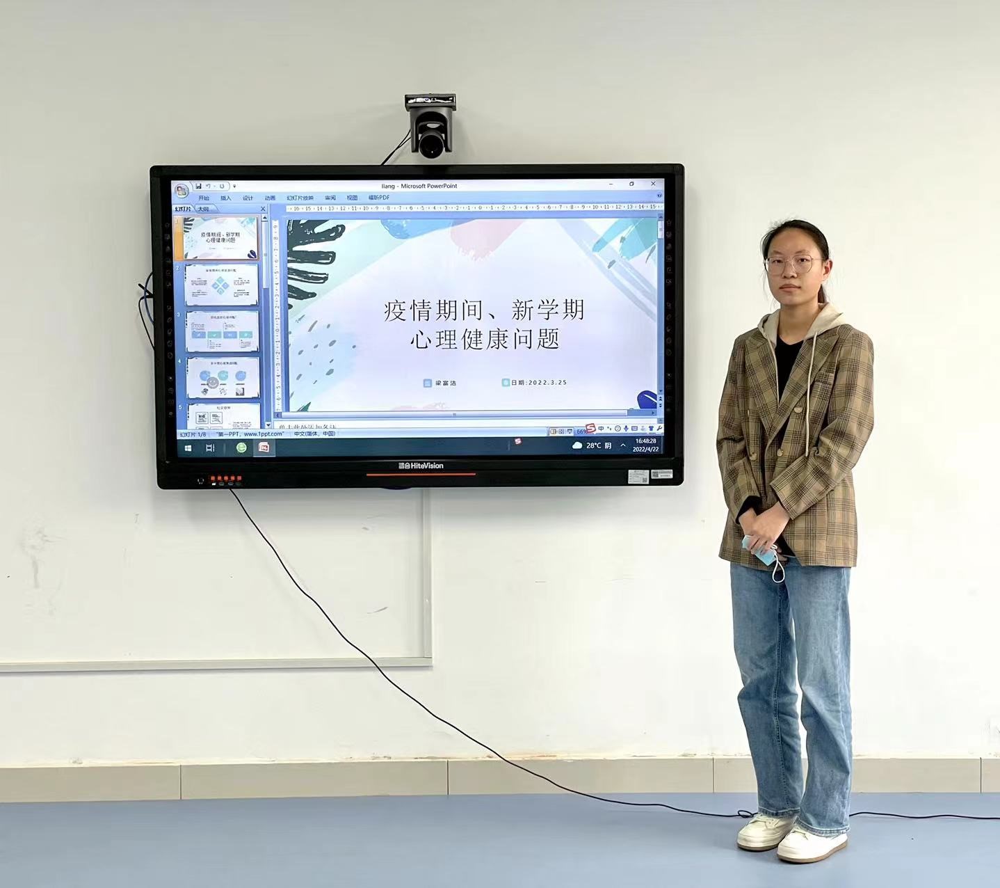2019级应用统计学梁富洁同学主要和大家交流了面对疫情和新的学期,如何应对心理健康问题。首先疫情期间心理焦虑常会造成认知上、行为上、情绪上以及躯体化反应出现问题,她建议同学们专注自己的事,学会心理调适,常与他人沟通以缓解焦虑。另外,新学期往往会有学习和人际交往的压力。在人际交往方面,年轻人多存在社恐的情况,她建议同学们应正确认识社恐问题,若心理问题已严重到影响日常生活,应主动寻求专业心理咨询人员的帮助。希望同学们出现心理烦恼时,能够及时疏通情绪,让负面情绪得到合理的排出,从而保证正常的学习和生活,保持心理健康。