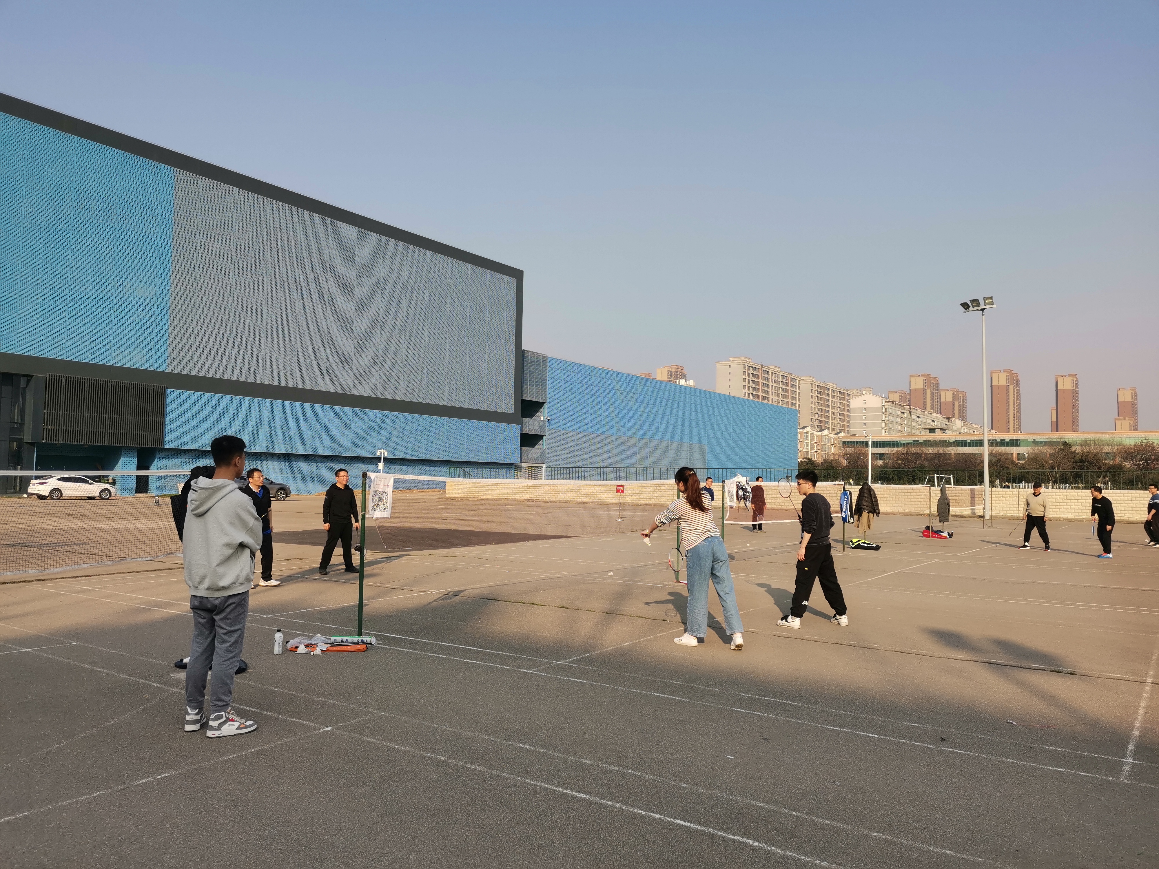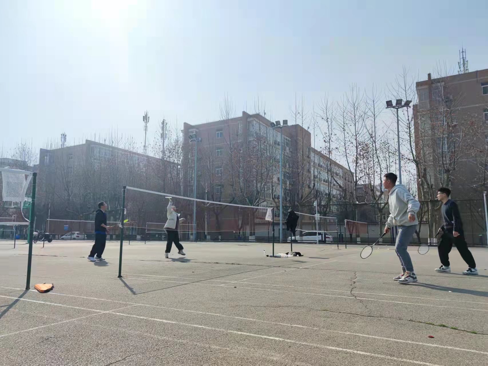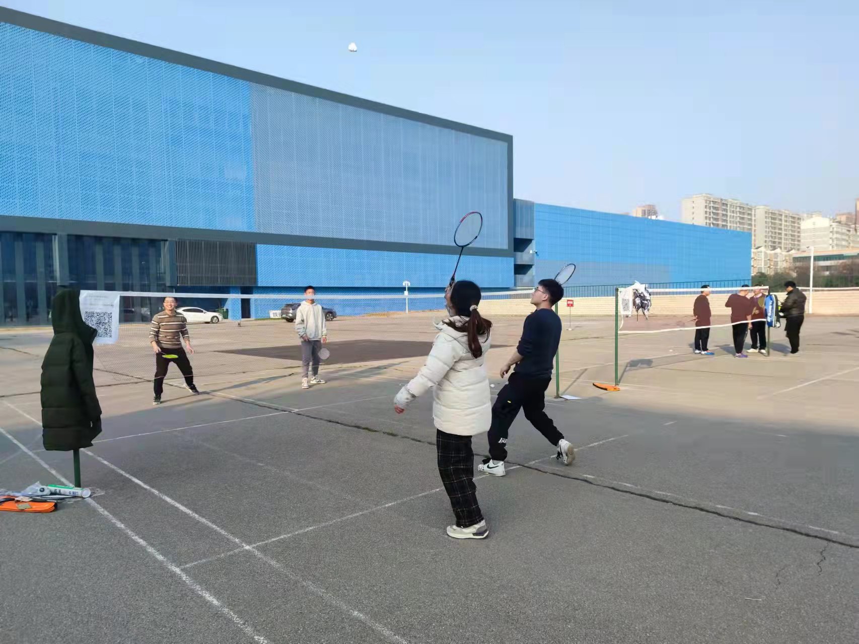 下午14时许,师生羽毛球友谊赛正式开始,师生们全身心投入比赛,灵活运用各种战术,精彩纷呈,现场气氛热烈、其乐融融。