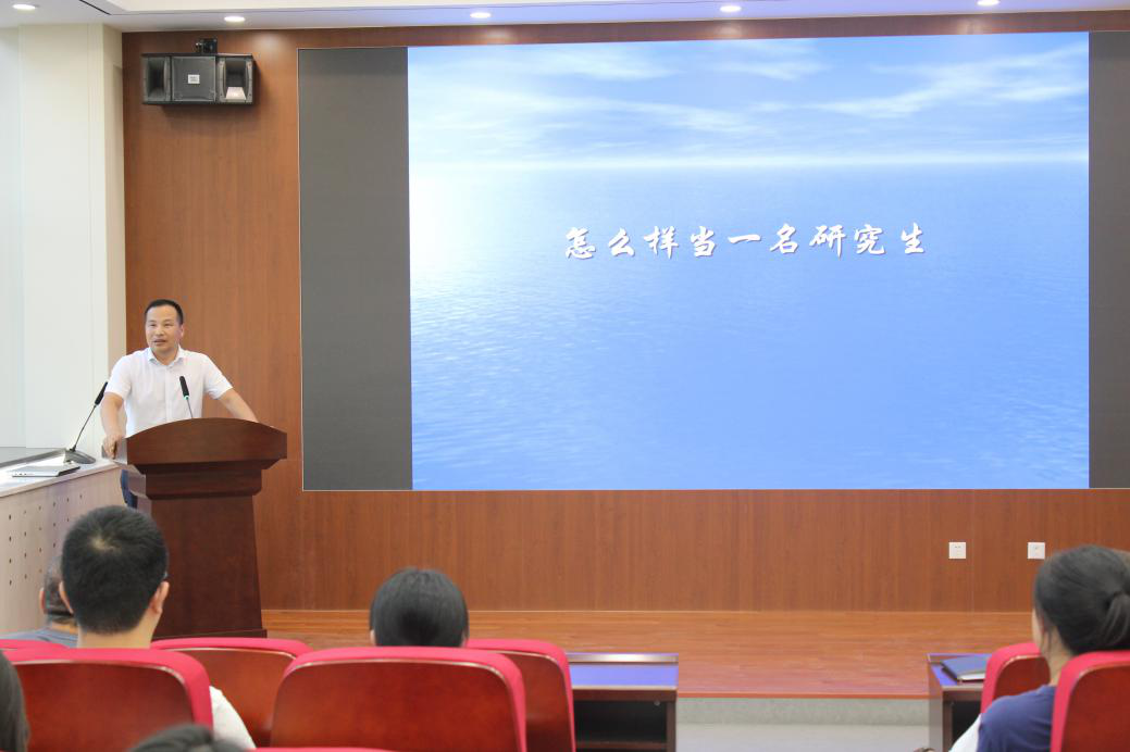 院长郭真华教授从“什么是研究生”“研究生学习和写论文”“研究生的学与问”“研究生的创新能力如何培养”、以及“学院研究生培养工作的认识和实践”等方面,全面介绍了怎样当好一名好的研究生。他指出,研讨是非常重要的学习和科研方式,尤其是要充分发挥同一导师组下研究方向集中、同学们可以更加便捷交流的优势,更好地实现相互学习交流、共同进步的目的。同时,倡导同学们在校期间要积极参加各类学术报告活动,主动同专家学者交流互动,不断提高自身专业素质和科研能力。