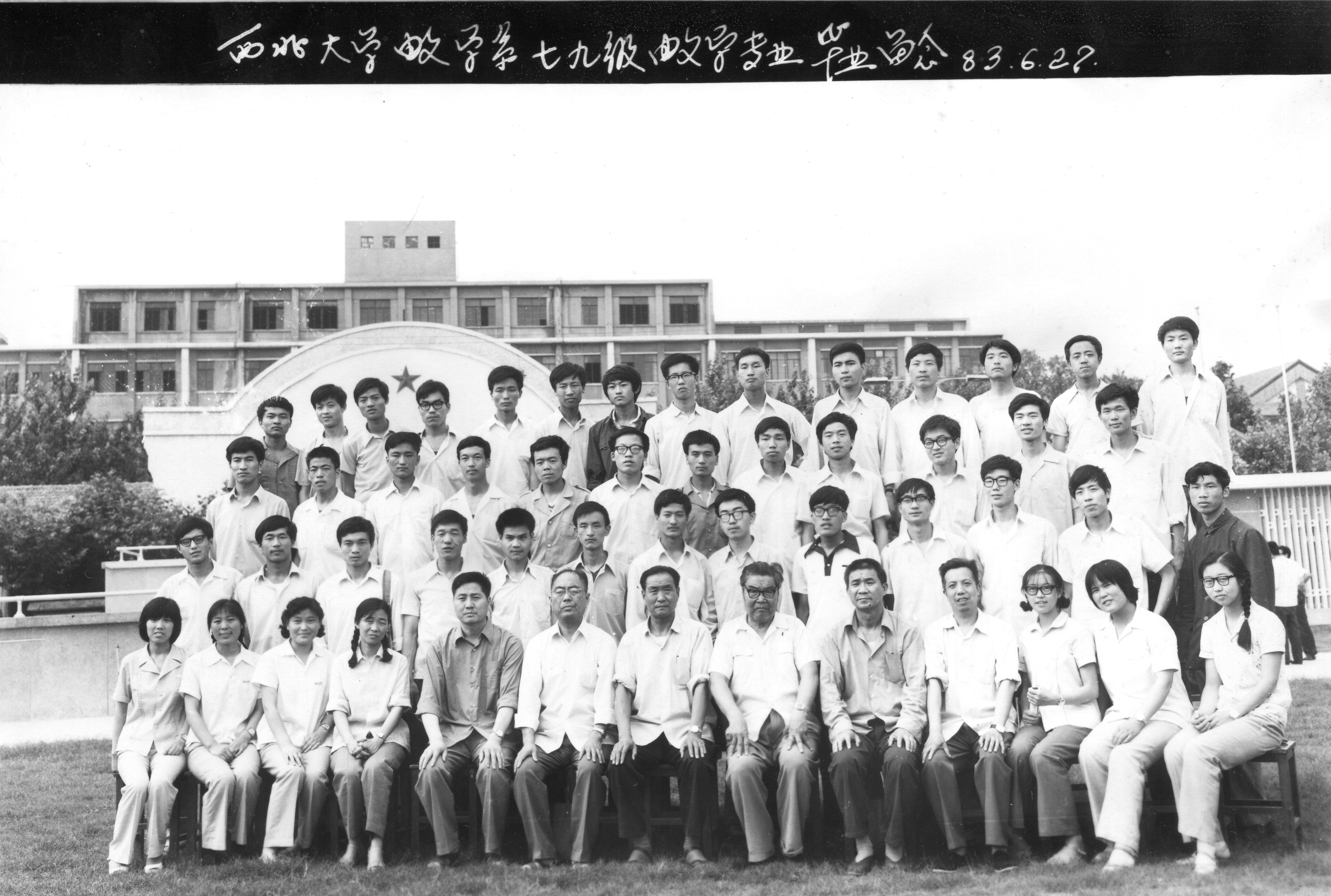 在这里,我们以华罗庚为泰斗、陈景润为偶像,刻苦学习专业,潜心研究学术。如今,“第四教室”已然成为我们七九级数专的名片。我们在校用的很多教材都是老师自编、手刻、油印的,是凝聚了老师自己的劳动和研究成果的,被我们戏称为“手抄本”;我们常常为学习上的问题争得面红耳赤,一直争论到深夜甚至次日凌晨;我们吃饭、回宿舍路上也在讨论学习上的问题;我们每天早上先去教室、图书馆占座位,再到操场锻炼,回宿舍洗漱,去食堂吃饭,然后去上课或自习;经济上我们大多数囊中羞涩,虽说拿着国家发的助学金,也只勉强够伙食费,但我们从来不在学习上省钱,我们笔记本、作业本都是买的最好的;我们曾以“初生牛犊不怕虎”的精神研究过“Fermat大定理”等诸多世界难题;我们曾听过无数次学术报告,偶尔也与教授、权威讨论问题;我们那时没有“双休”,每周只有周日一天假,但除了匆匆洗澡和换洗衣服外,我们周日也往往仍在教室学习;毕业的时候,我们以将来能够从事本专业为骄傲。我们庆幸自己曾有郭琦这样的校长、张棣这样的系主任和陈鸿业这样的党总支书记,我们庆幸自己曾有刘书琴、王戍堂、李继闵、熊必璠、孟杰、张棣、朱钤、盛德成、王文波、任建华、戴锦生、林伯明、谢大来、党新益、李柏玲、胡希正、张玉田、郑醒华、耿光、凌岭、穆玉杰、柴乃垿、王尚志、李伯渝、赵根榕、邢志栋这样好的专业老师。