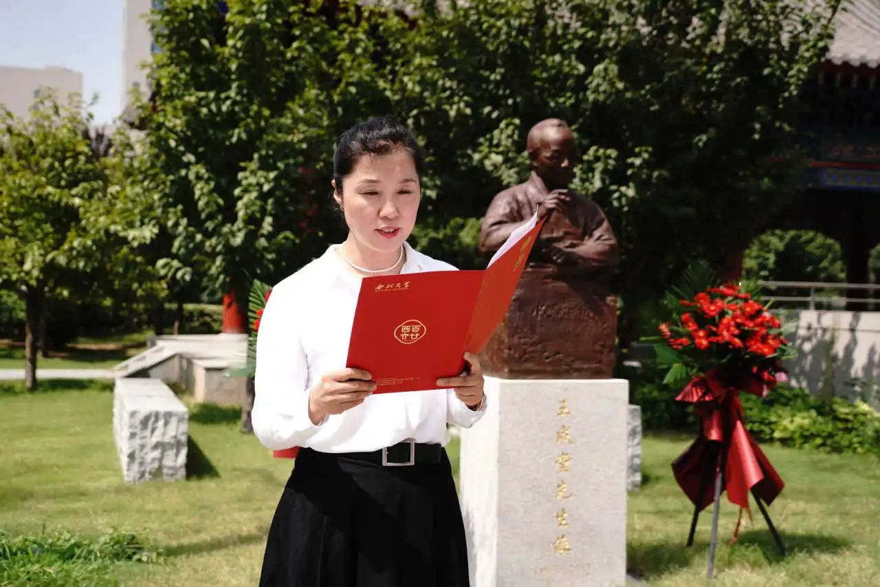 在全国第39个教师节来临之际,9月8日上午,王戍堂先生铜像揭幕仪式在长安校区东学楼南侧隆重举行。王戍堂先生之子王兵,校长郭立宏,校党委常委、副书记张清,校党委常委、副校长吴振磊,校党委常委、宣传部部长田明纲,威尼斯娱人城集团班子成员以及师生代表50余人参加了揭幕仪式。仪式由副校长吴振磊主持。